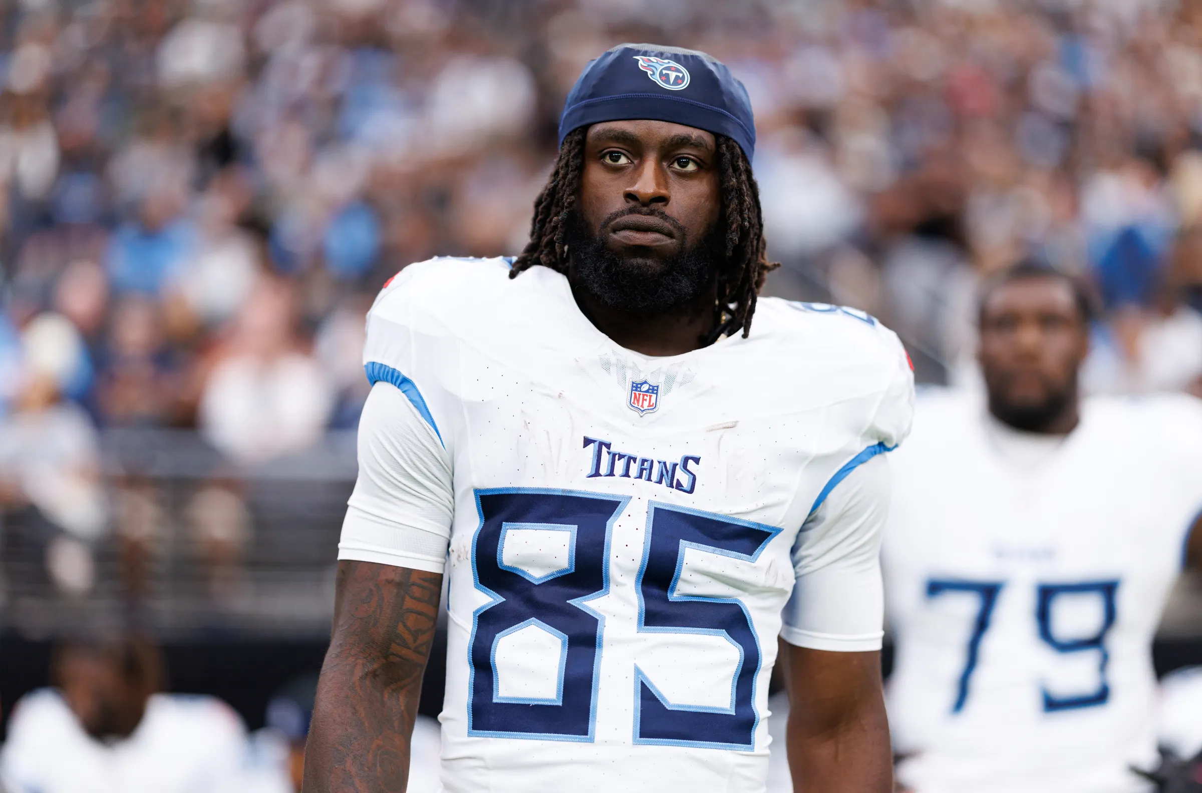 Chig Okonkwo plays tight end for the Tennessee Titans in the National Football League.