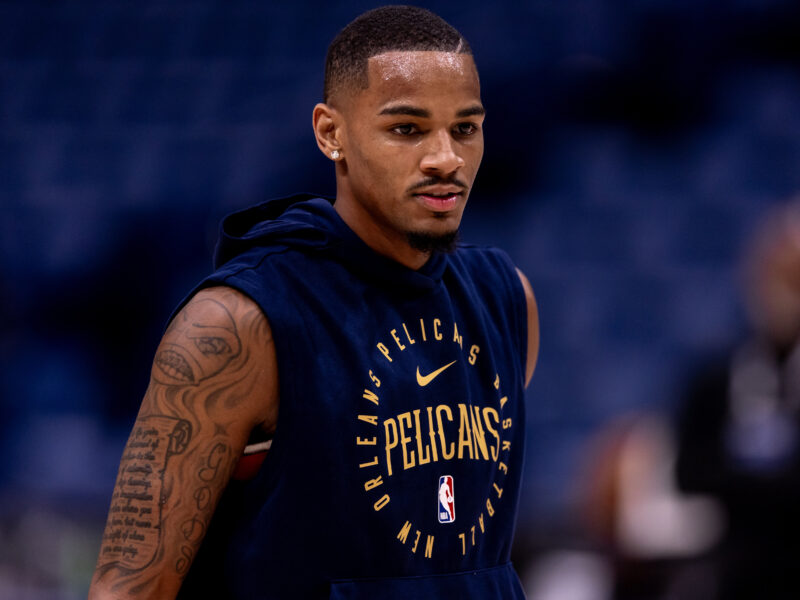 Oct 23, 2024; New Orleans, Louisiana, USA; New Orleans Pelicans guard Dejounte Murray (5) during warmups before the game against the Chicago Bulls at Smoothie King Center. Mandatory Credit: Stephen Lew-Imagn Images